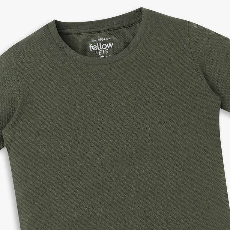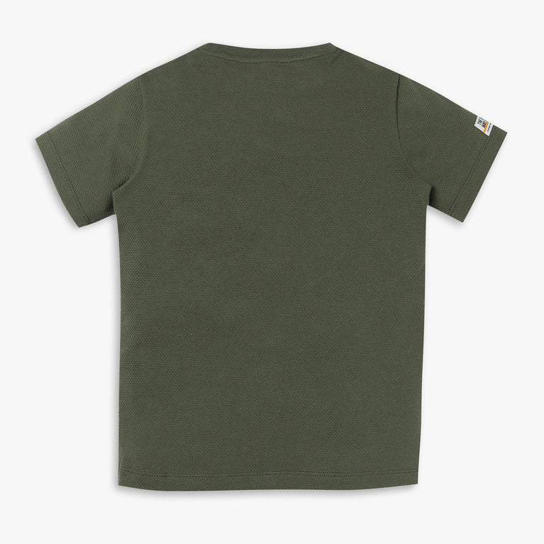 These solid pattern t-shirt has crew neck and half sleeve. Made from cotton polyester, your kid's feel comfortable wearing the product.
