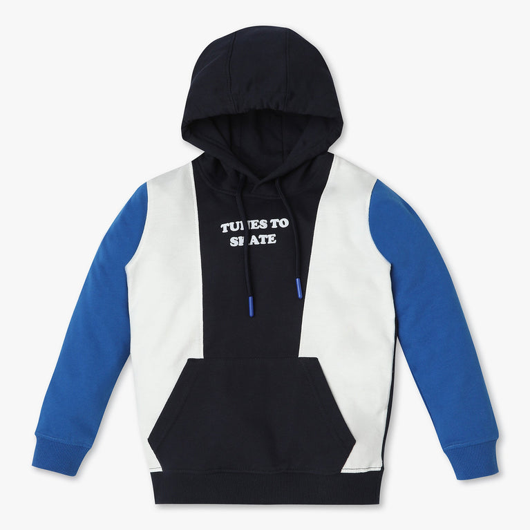 These cut and sew pattern sweat tees has hoodie and full sleeve. Made from cotton polyester, your kid's feel comfortable wearing the product.