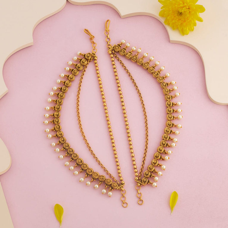 Antique Clip On NathSteal the spotlight with Kushal's antique nath. Featuring vibrant ruby or classic white stones and a chic gold polish, it’s designed to impress. Crafted from durable copper alloy with a secure pressing mechanism, this nath is both stylish and reliable. Perfect for adding a subtle yet sophisticated flair to any outfit.