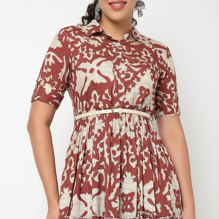 Camp Collar Knee Length Three-Fourth Sleeve Straight Fit Printed Kurta
