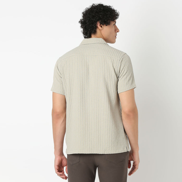Camp Collar Half Sleeve Yarn Dyed Textured Mood Shirt