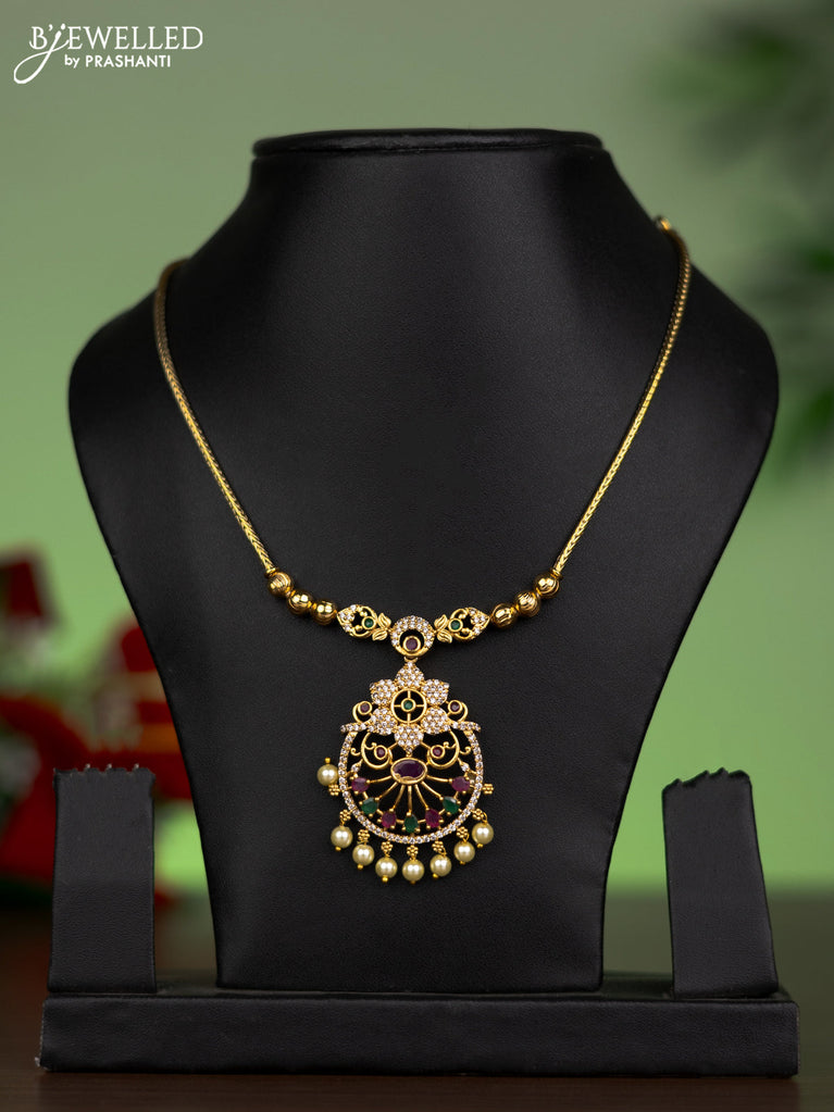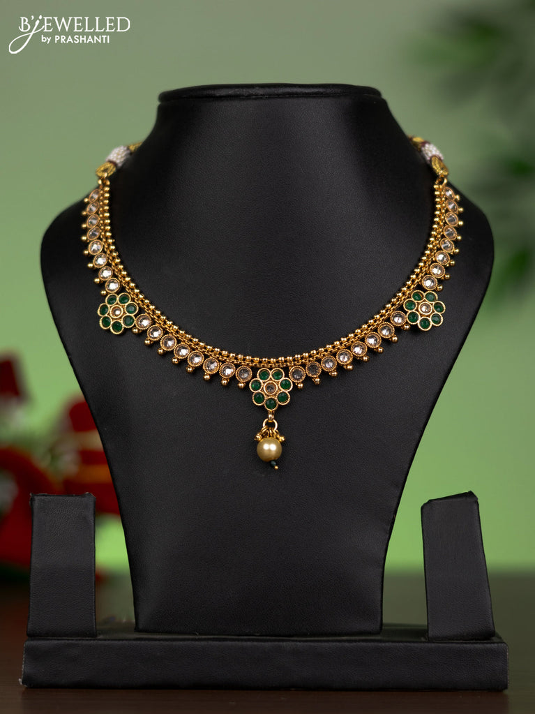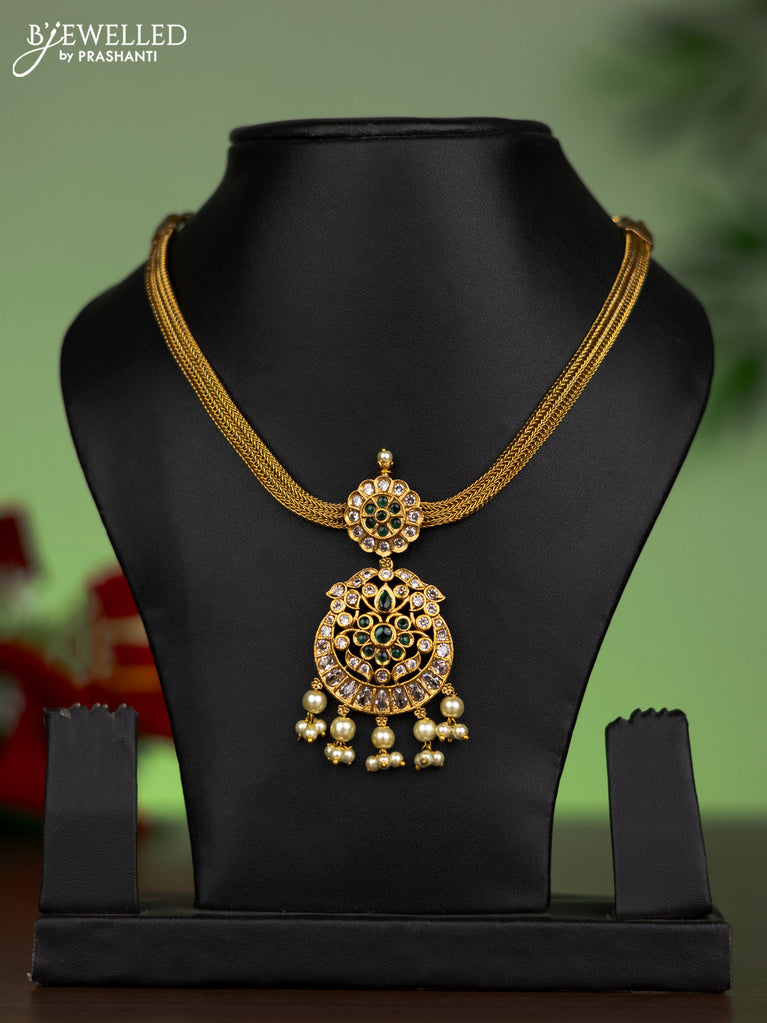 Antique attigai necklace floral design with emerald & cz stones and pearl hanging without earring
