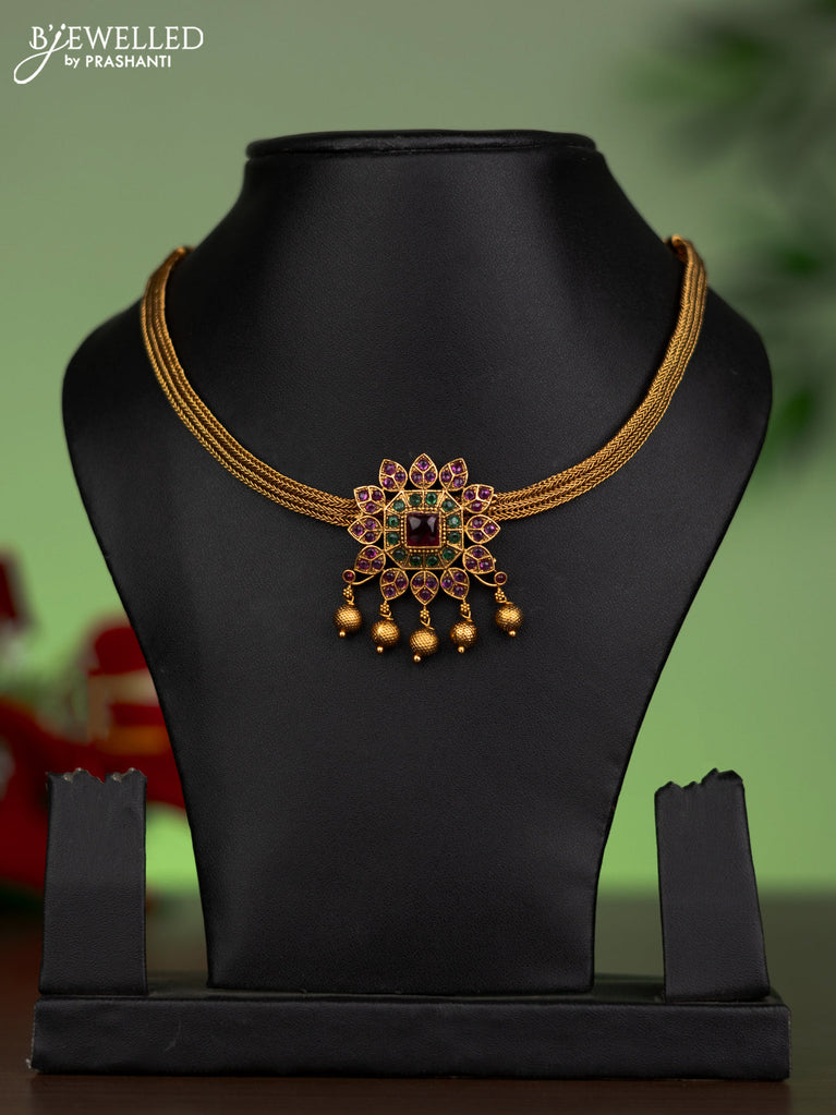 Antique attigai choker chandbali pendant with kemp stones and pearl hangings without earrings