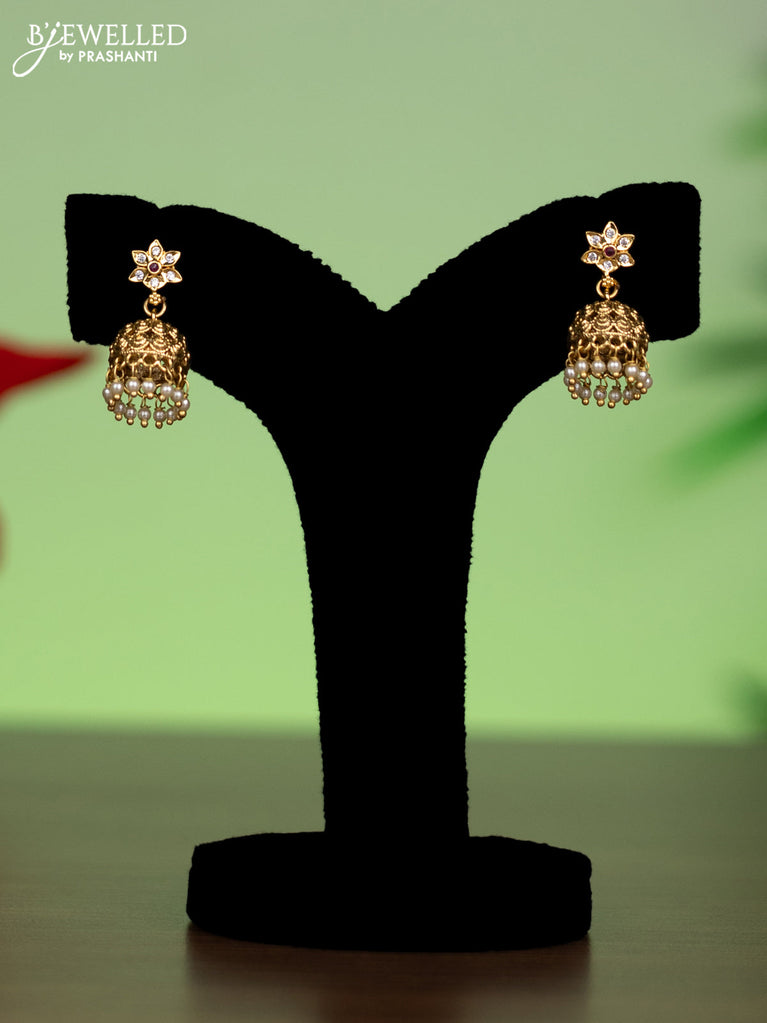 Antique attigai necklace with kemp & cz stones and pearl & green beads hanging