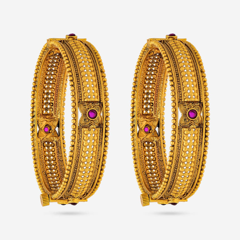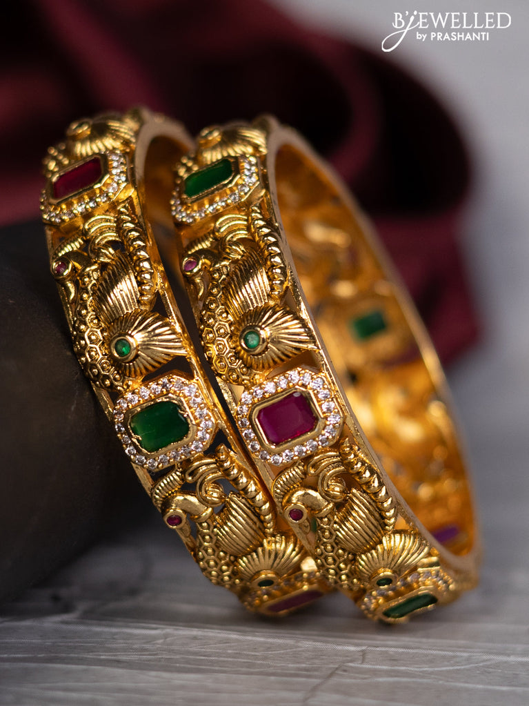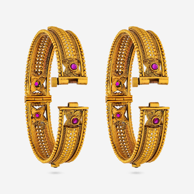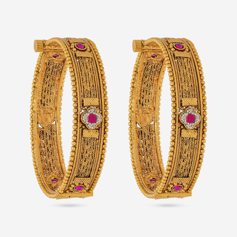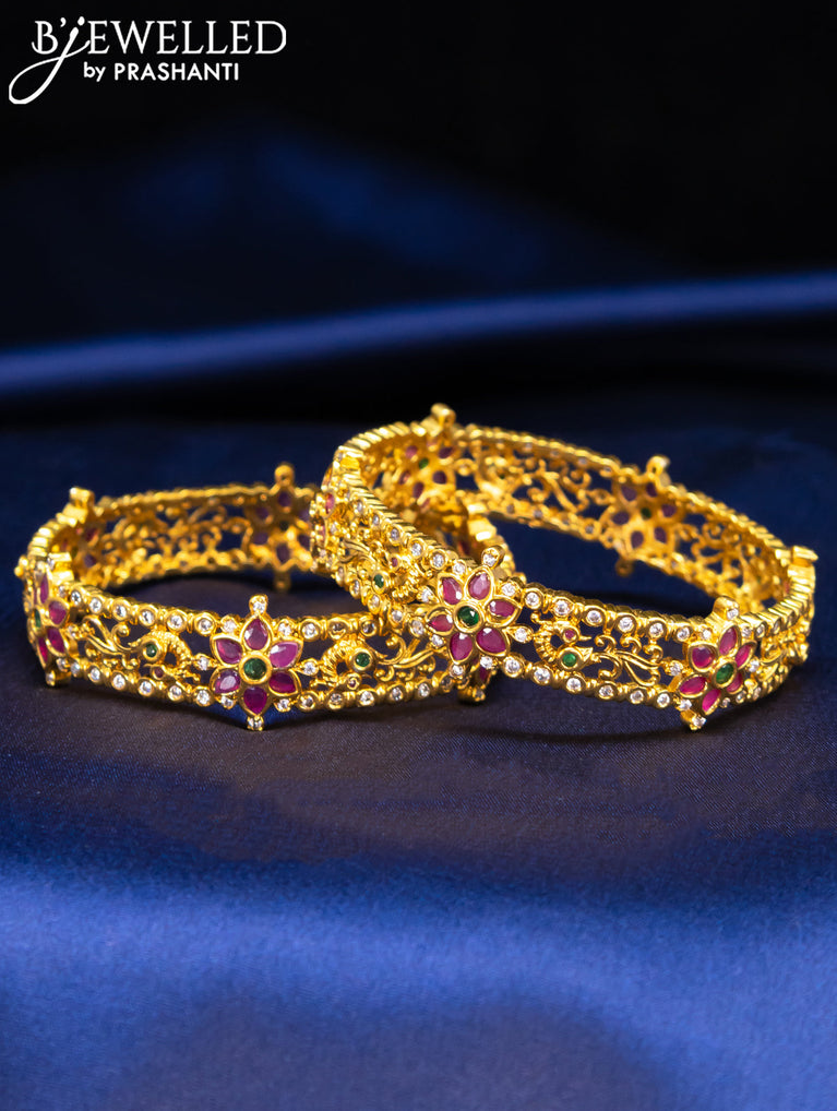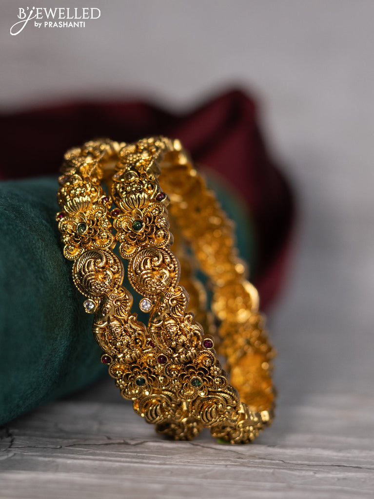 Antique bangle lakshmi and floral design with cz and kemp stones