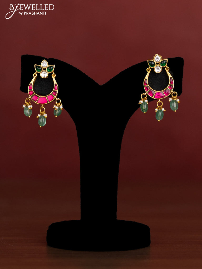 Antique beaded green haaram lakshmi pendant with pink kemp stones and beads & pearl hangings