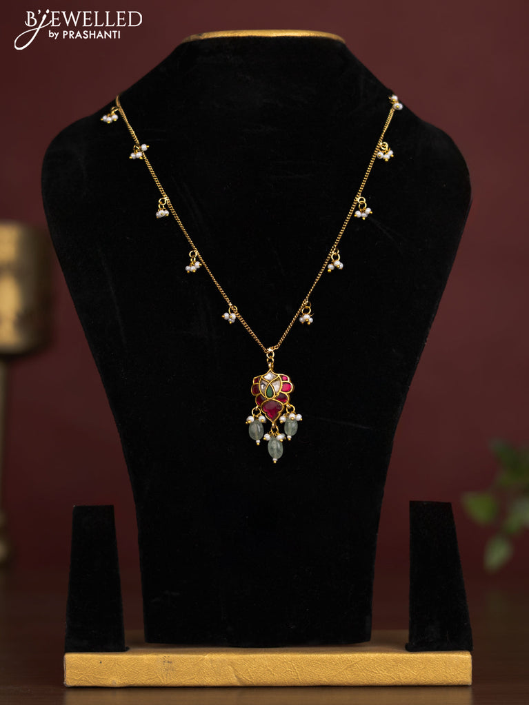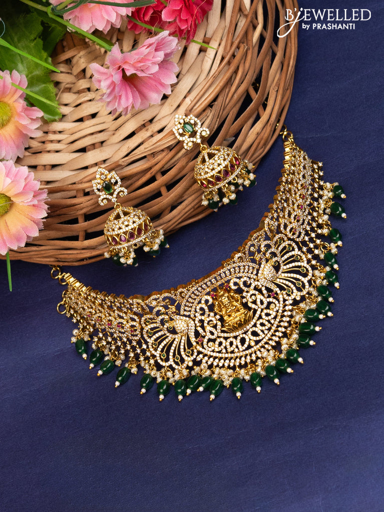 Antique choker lakshmi design with kemp & cz stones and pearl & green beads hanging