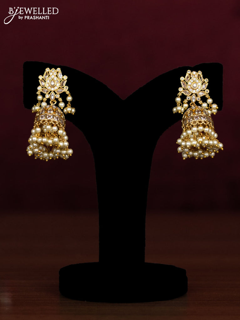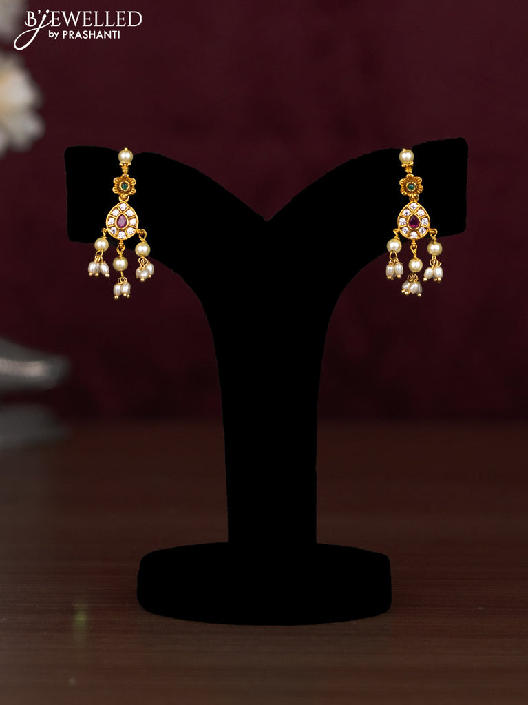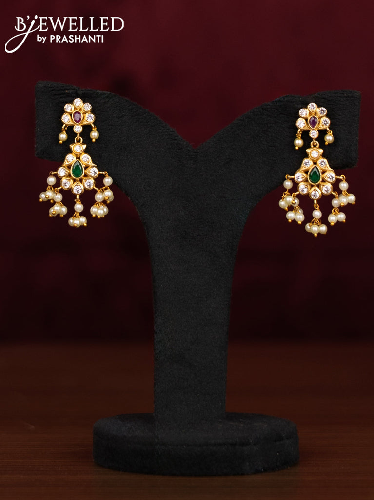 Antique guttapusalu necklace chandbali & manga design with kemp & cz stones and pearl hangings