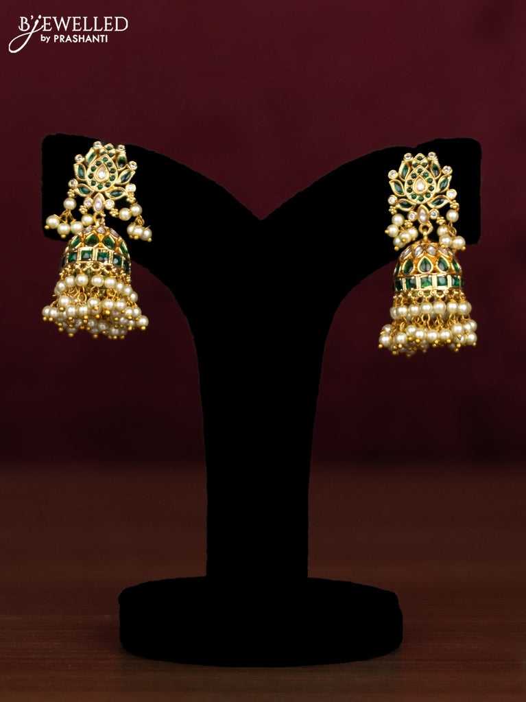 Antique guttapusalu necklace floral design with emerald & cz stones and pearl hangings