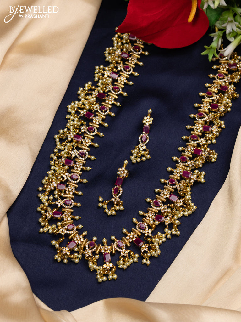 Antique guttapusalu necklace chandbali & maanga pattern with cz ,ruby stones and pearl hangings without earring