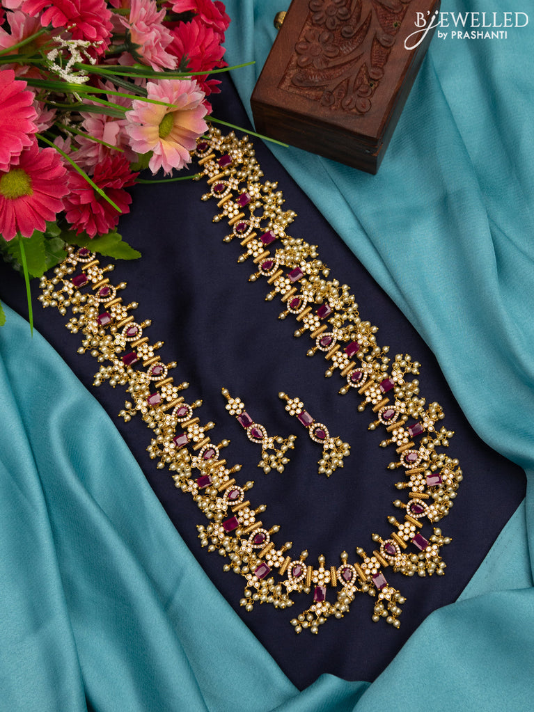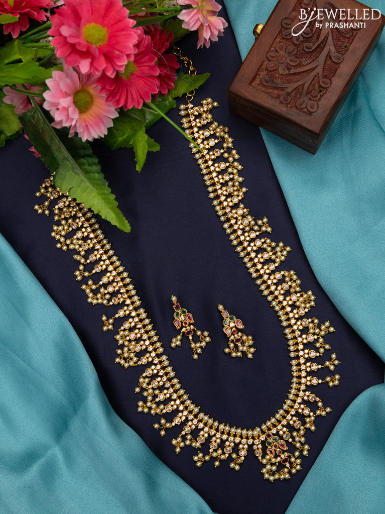 Antique guttapusalu haaram with kemp & cz stones and pearl hangings