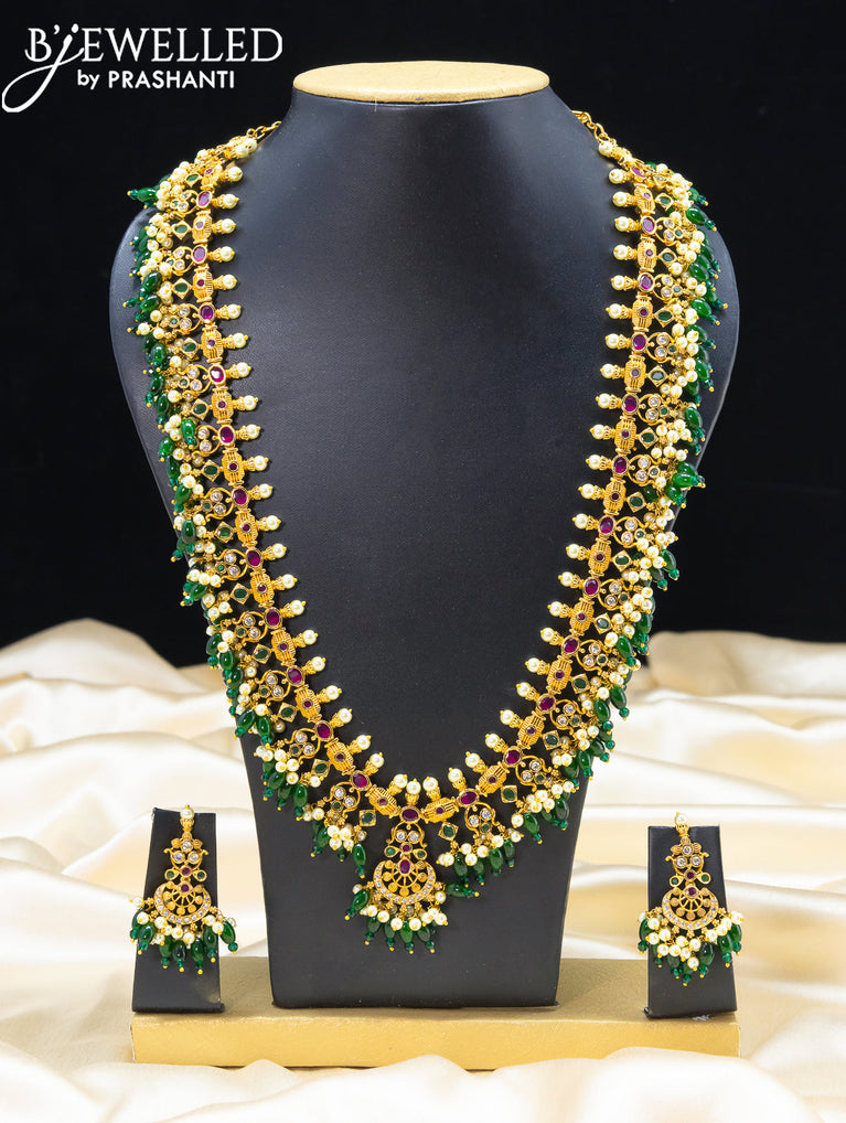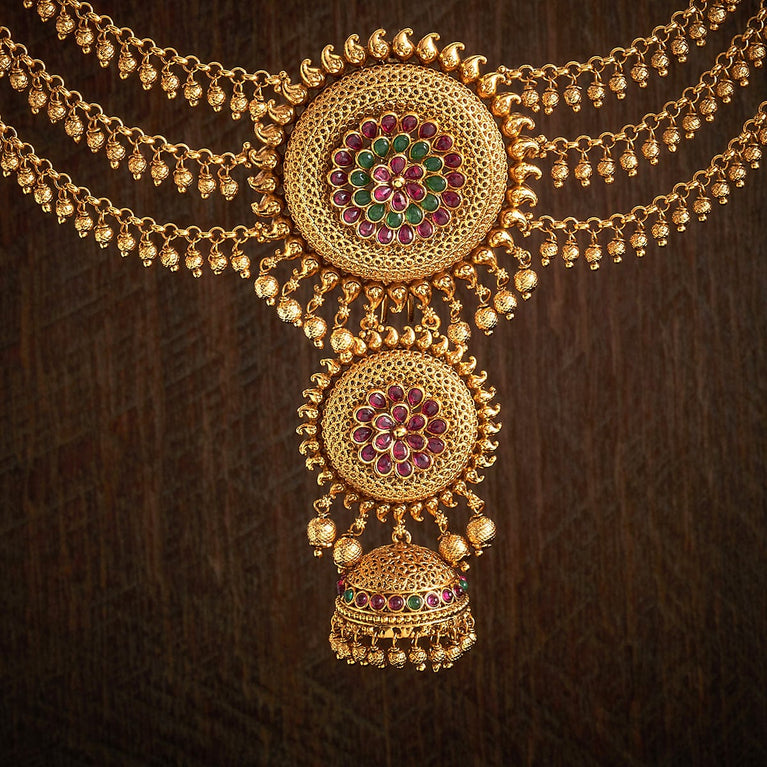 Antique haaram ram parivar & peacock design with kemp stones and golden beads hangings