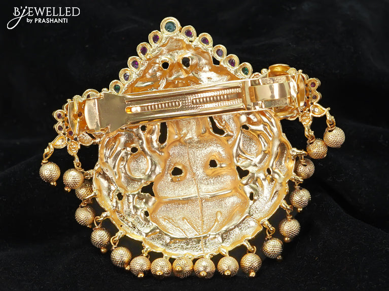 Antique haip clip medium size lakshmi design with kemp stones and golden beads hanging