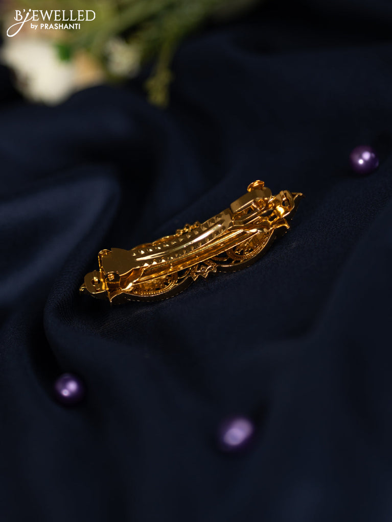 Antique hair clip small size lakshmi design with kemp & cz stones pearl hangings