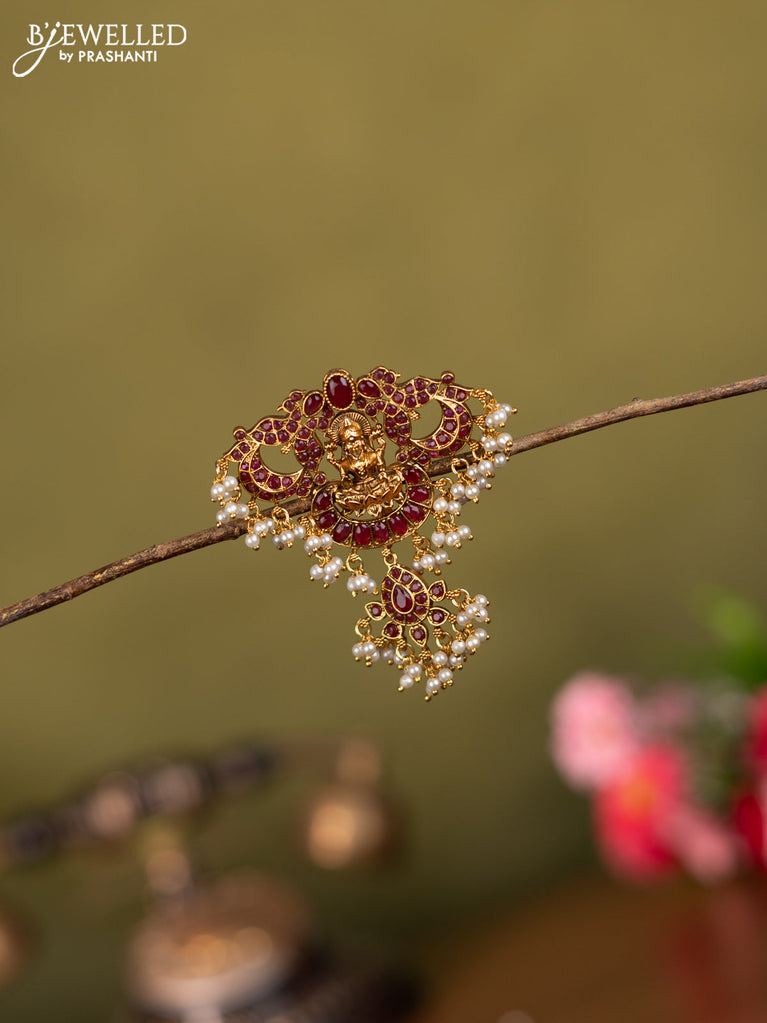 Antique jada billai lakshmi design with kemp stones and golden beads hanging