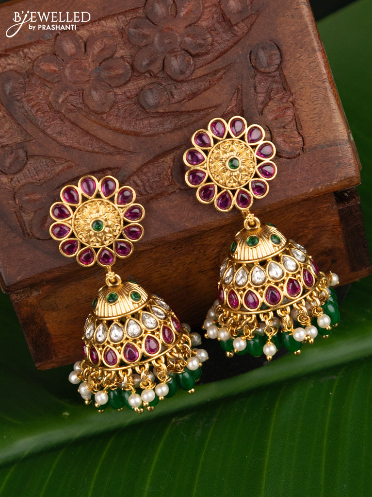 Antique jhumka floral design with kemp stone and gold beads hangings