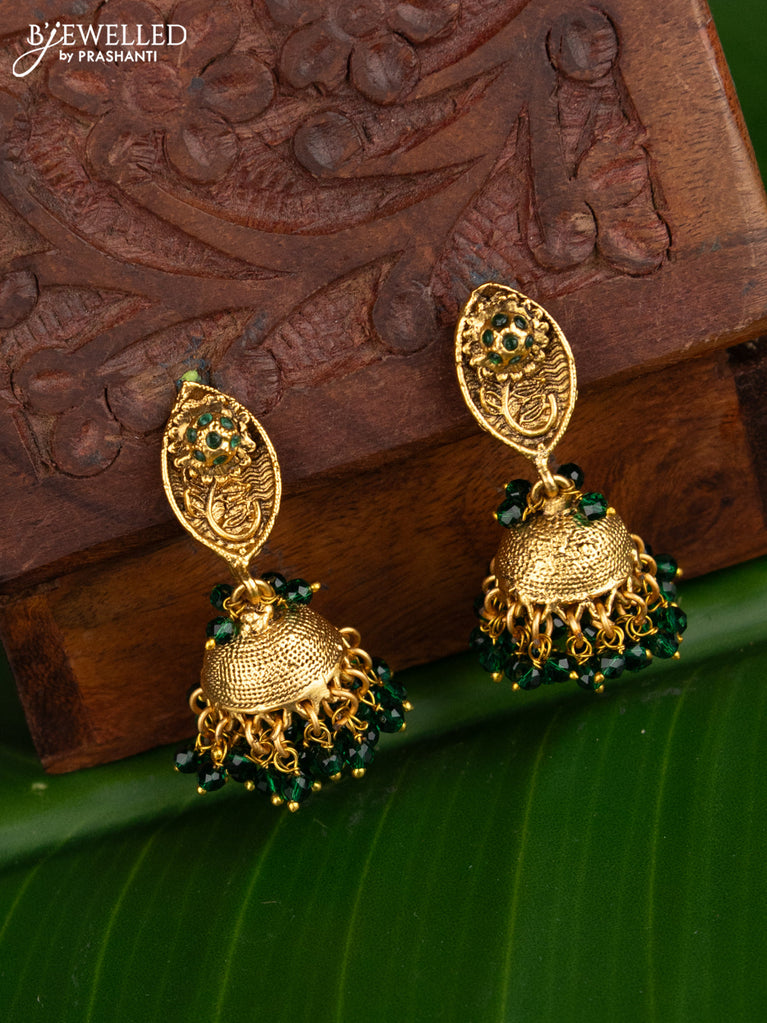 Antique jhumka lakshmi design with kemp stones and green beads hanging