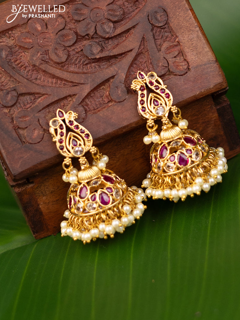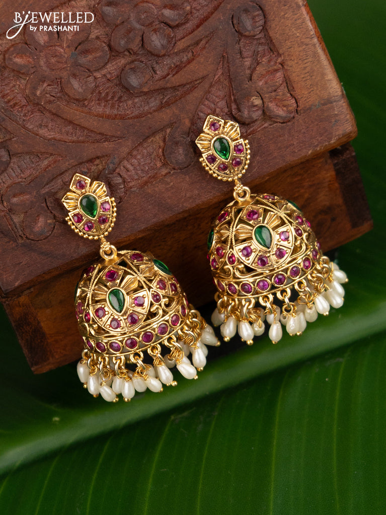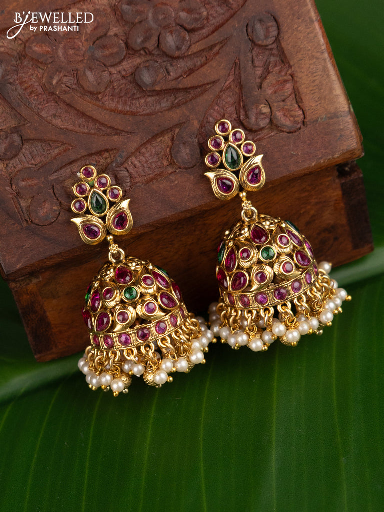 Antique jhumka with kemp stones and pearl hangings