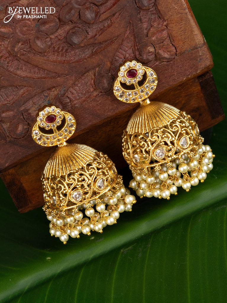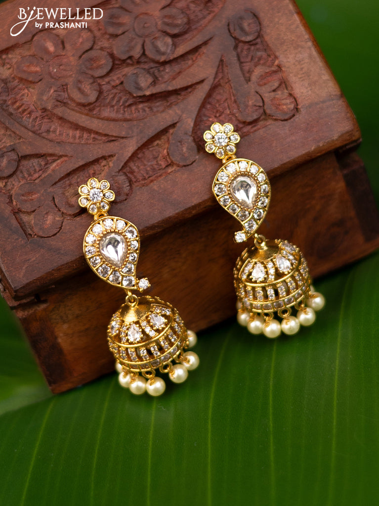 Antique jhumka with kundan & cz stones and pearl hangings