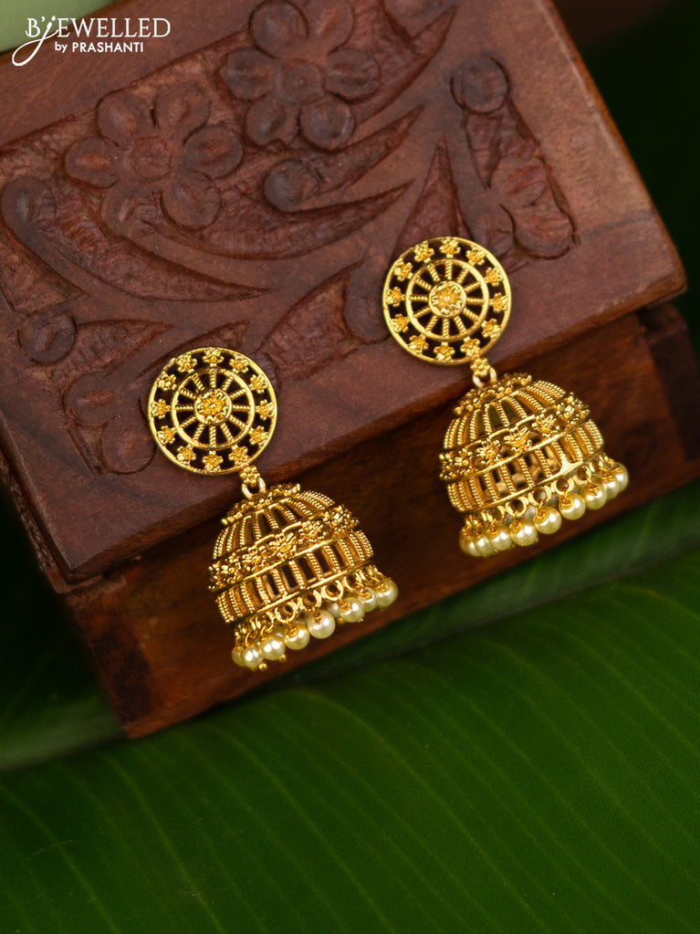 Antique jhumka with simple design and pearl hangings