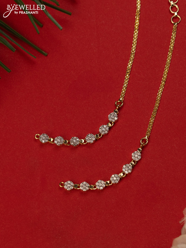 Antique maang tikka with emerald & cz stones and gold beads hangings