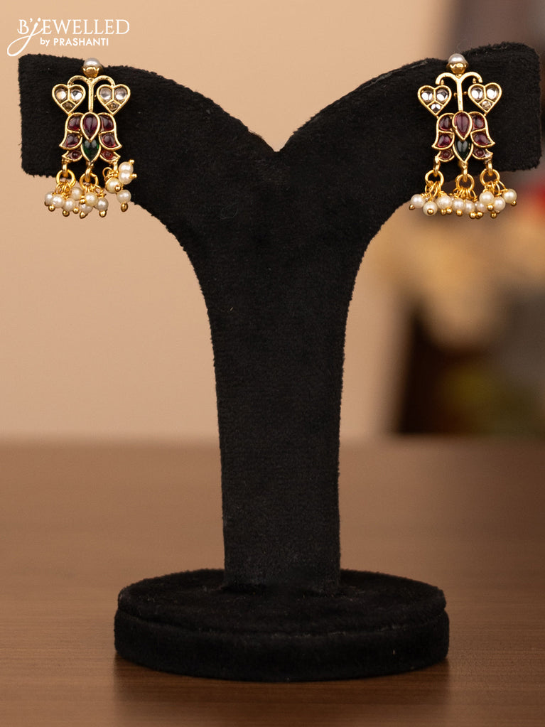 Antique necklace lakshmi & peacock design with pink kemp & cz stones and pearl hangings