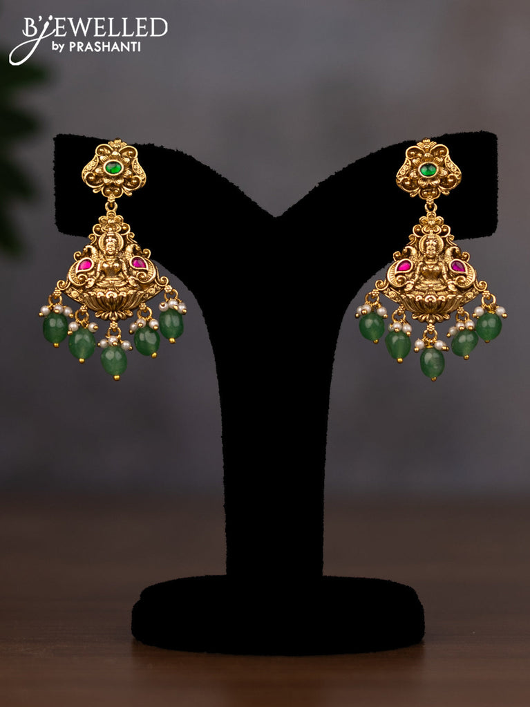 Antique necklace lakshmi design with jadau stones and green beads hanging