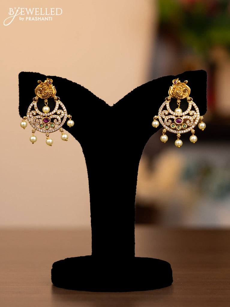 Antique necklace elephant & peacock pendant with kemp & cz stones and pearl hangings