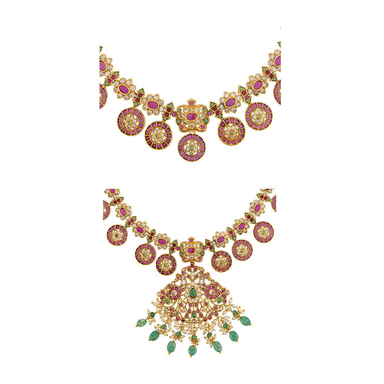 Antique necklace floral design with kemp & kundan stones and pearl hangings
