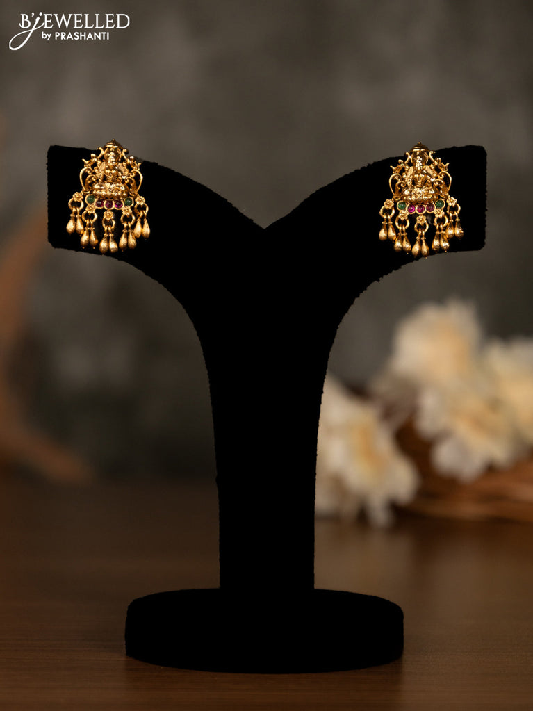 Antique pendant set lakshmi design with kemp stone and golden beads hangings