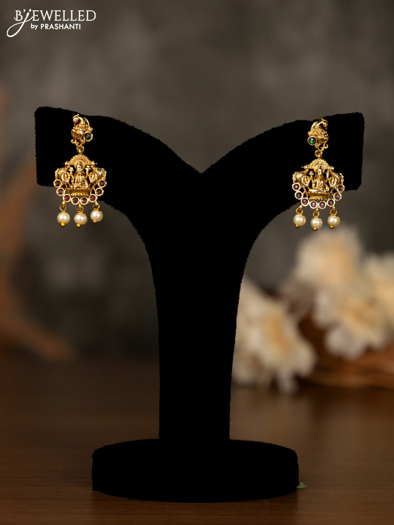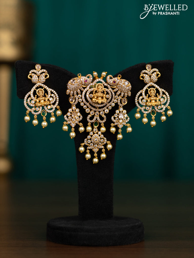 Antique pendant set lakshmi design with kemp & cz stones pearl hangings