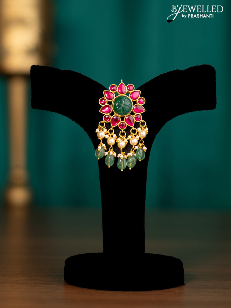 Antique pendant with jadau stones and natural beads & pearl hangings without earrings