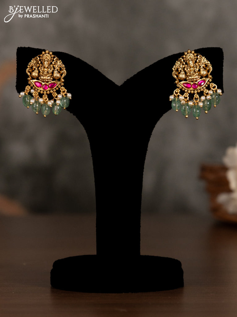 Antique pendant set lakshmi design with kemp stones and green beads hanging