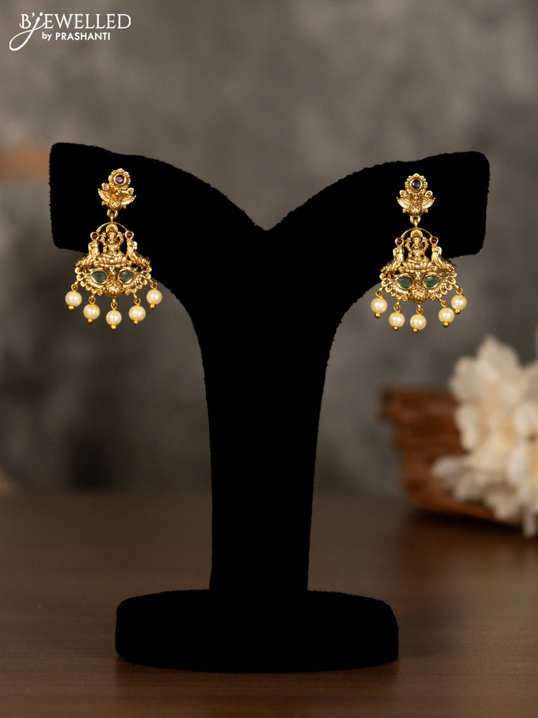 Antique pendant set tirupati balaji design with kemp & cz stones pearl & golden beads hanging