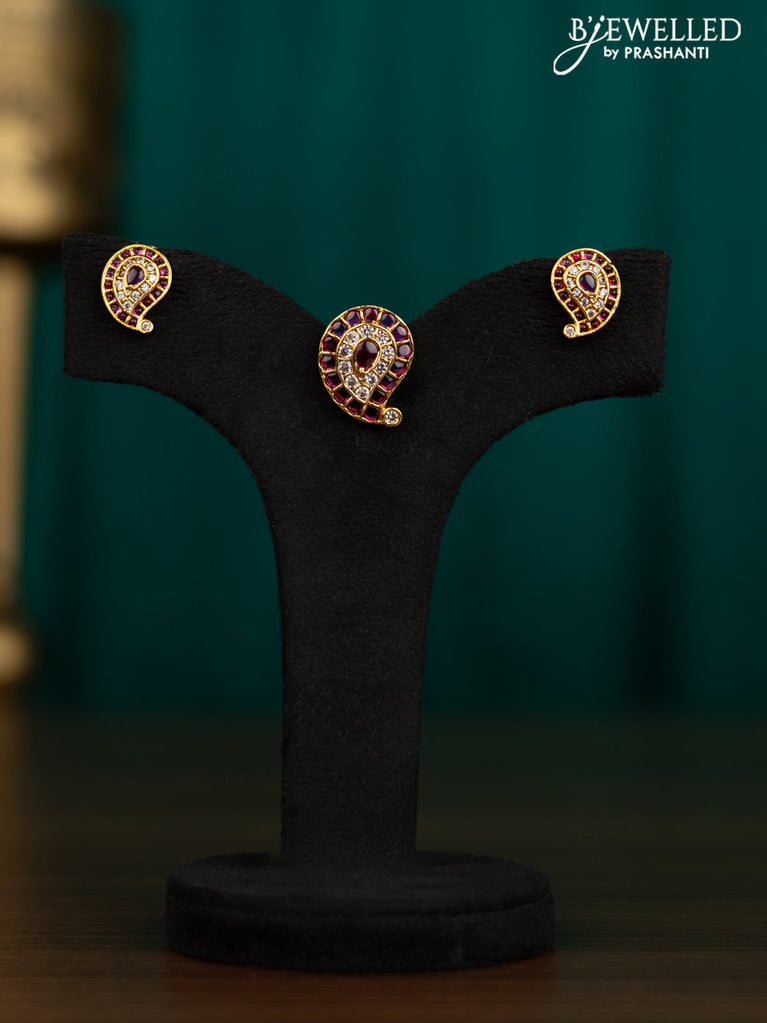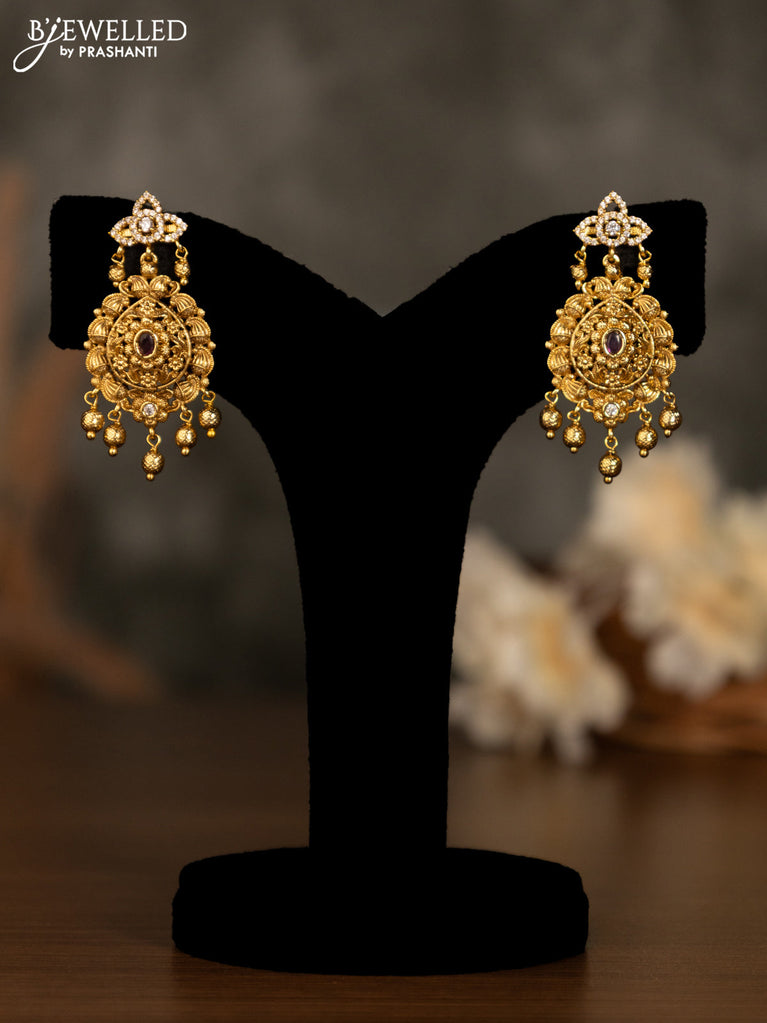 Antique pendant set with pink kemp & cz stones and golden beads hanging