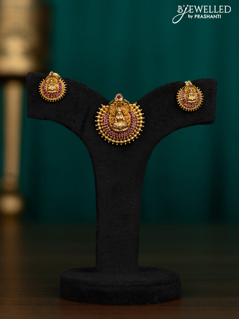 Antique pendant set lakshmi design with pink kemp stones