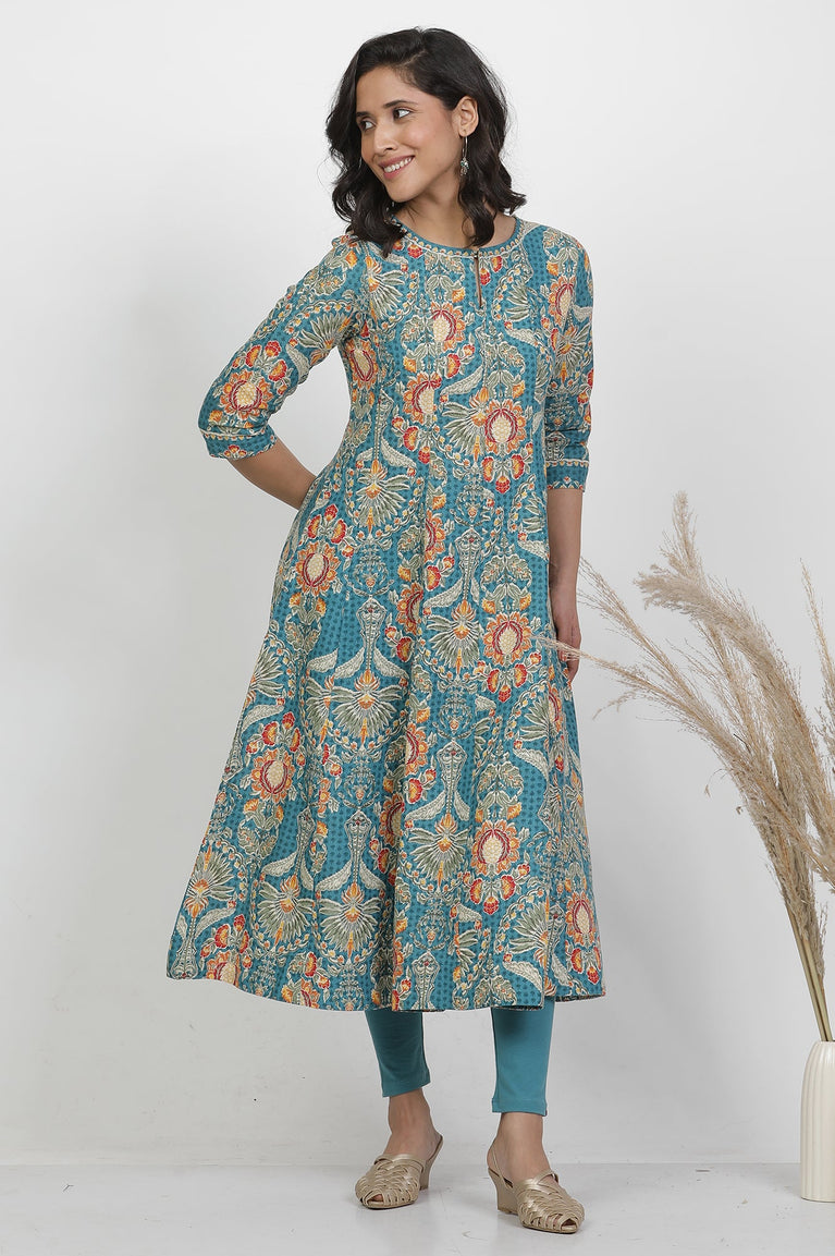 Refresh your ethnic wardrobe with this aqua green straight kurta in soft modal fabric. Known for its silky smooth texture and fluid drape, modal ensures breathable comfort, while the delicate prints bring a graceful finish. Ideal for long workdays or relaxed family events, this kurta for women offers an elegant yet fuss-free aesthetic. The straight silhouette flatters all body types and pairs well with both traditional and contemporary bottoms. This is a go-to piece for anyone looking to balance style with comfort in their cotton kurta alternatives.