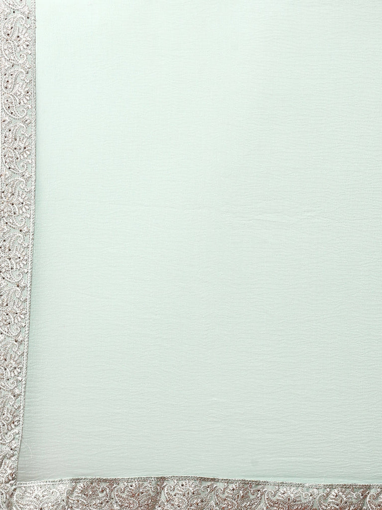 Aqua Green Chiffon Dupatta With Gold Mukaish