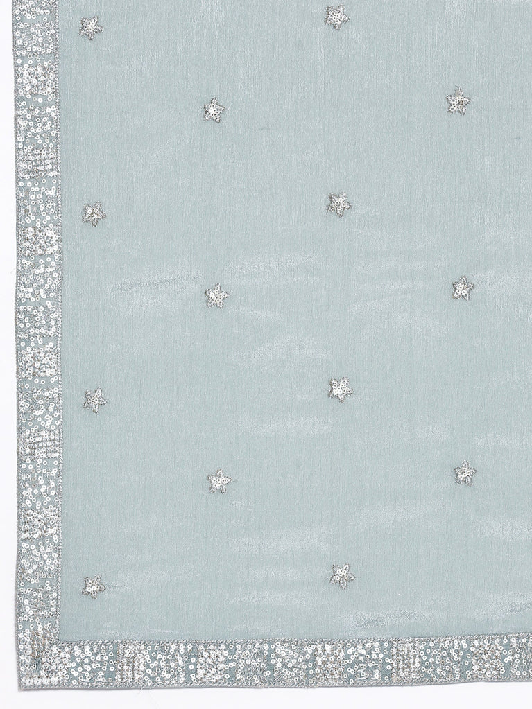 Aqua Blue Embroidered kurta With Printed Parallel Pants And Chiffon Dupatta