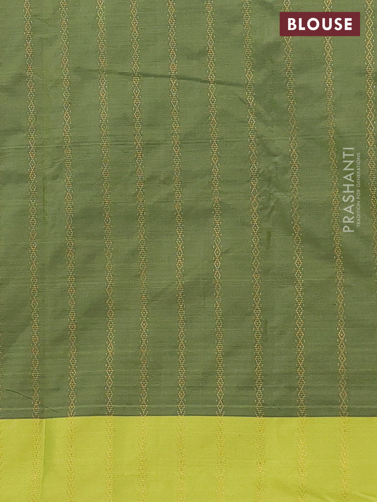 Arani semi silk saree dark sap green with allover zari weaves in borderless style