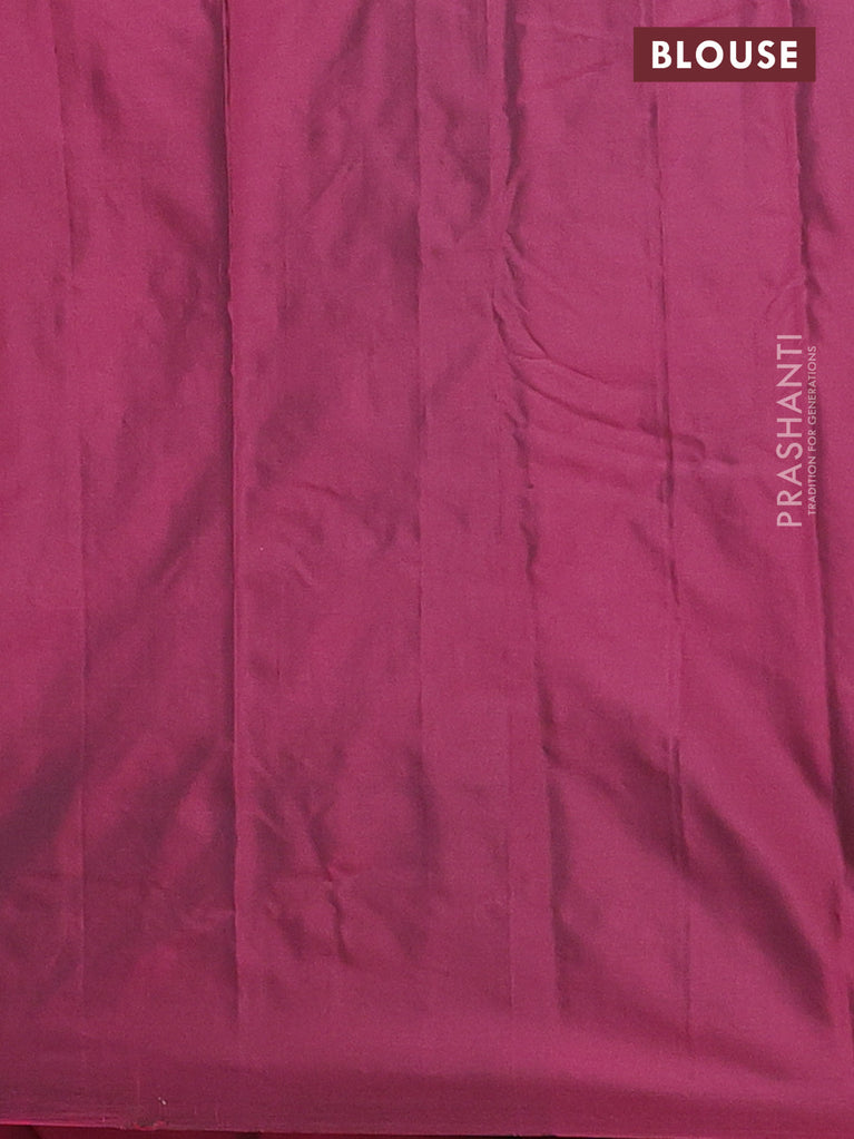 Arani semi silk saree dark magenta pink with silver zari woven buttas in borderless style
