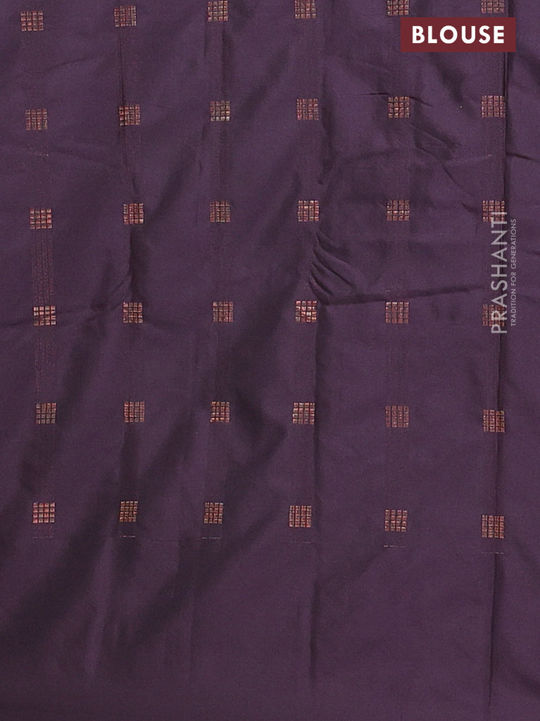 Arani semi silk saree deep jamun with copper zari woven buttas in borderless style