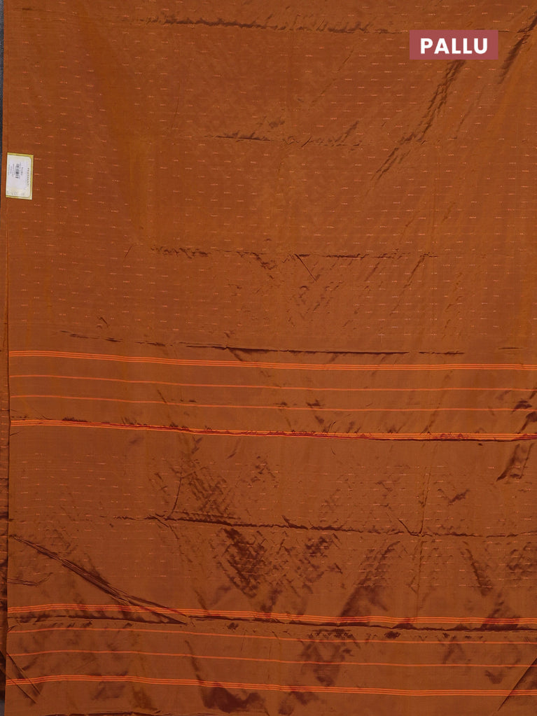 Arani semi silk saree deep coffee brown with allover copper zari weaves in borderless style