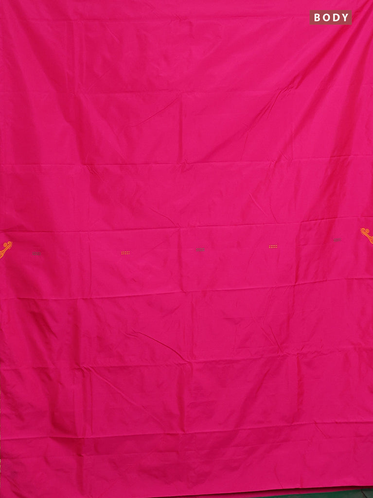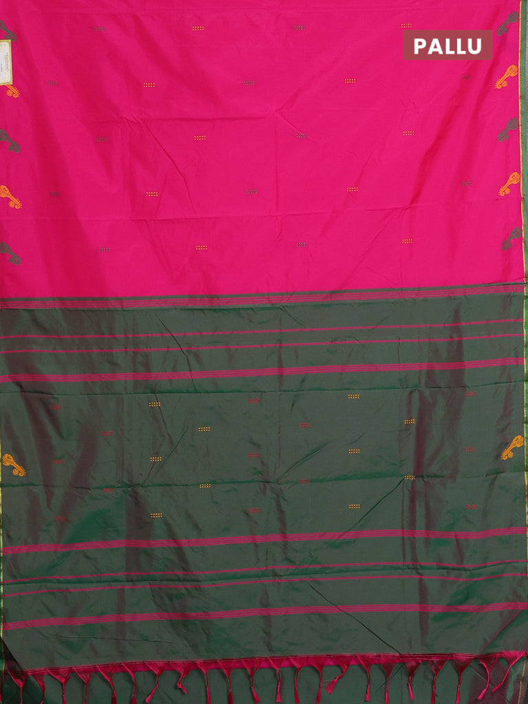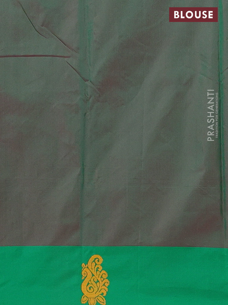 Arani semi silk saree peacock green with zari woven thilak buttas and zari woven border
