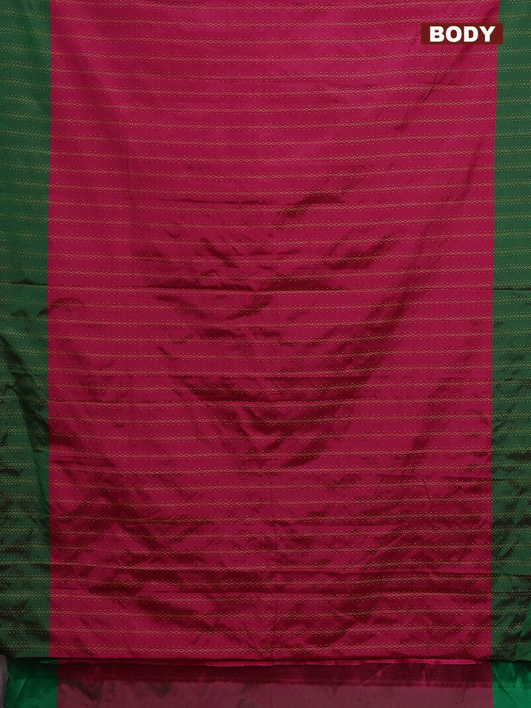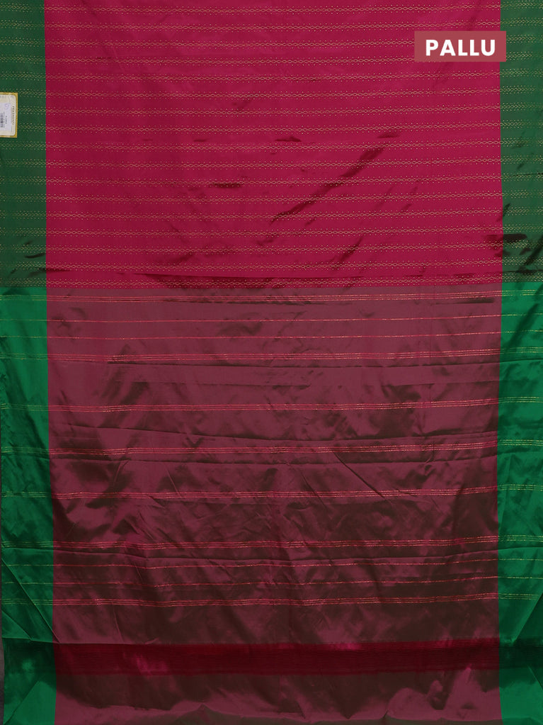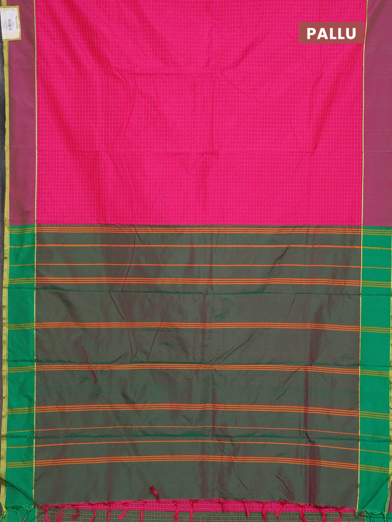 Arani semi silk saree pink and green with allover thread weaves and rettapet zari woven border`
