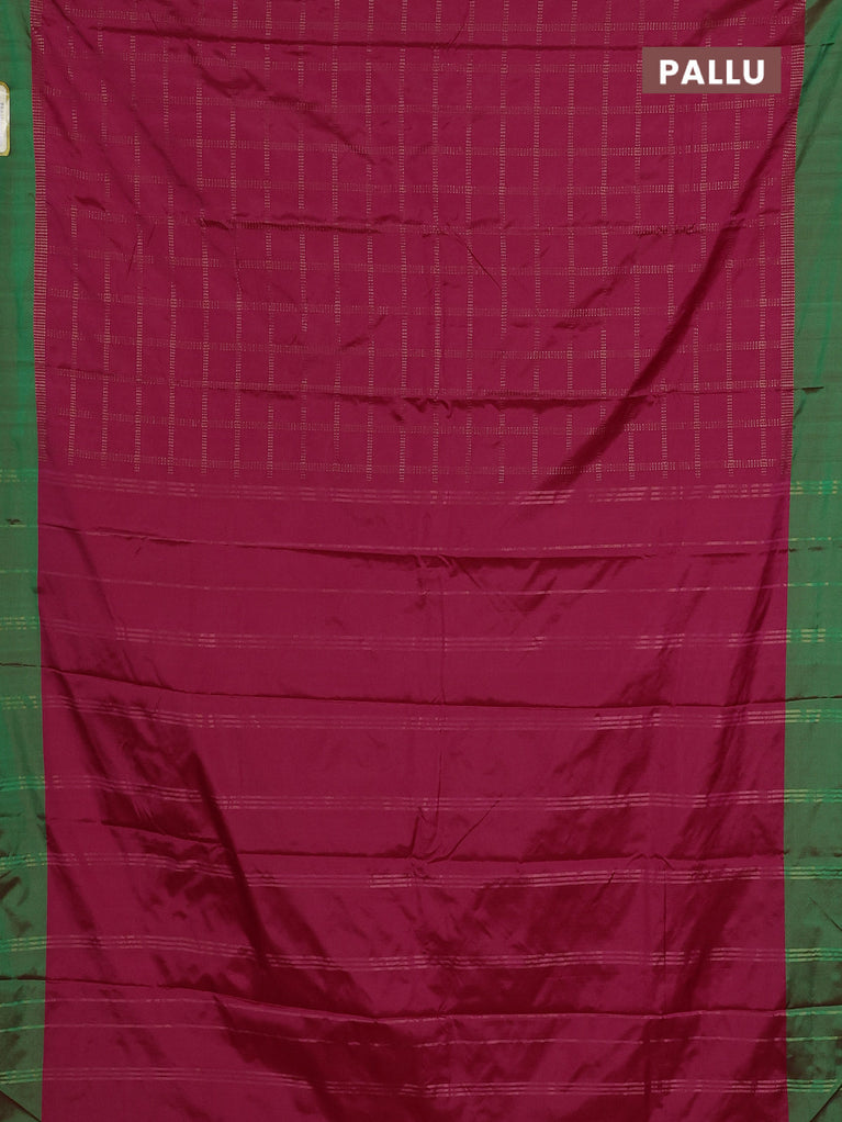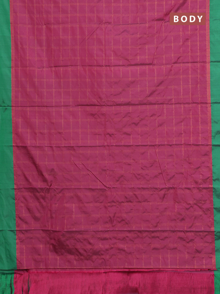 Arani semi silk saree pink and green with allover copper zari checked pattern and copper zari woven simple border
