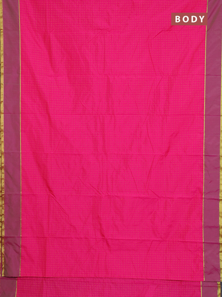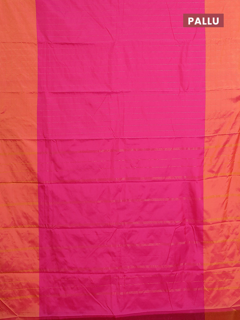 Arani semi silk saree pink and dark mustard with plain body and zari woven simple border