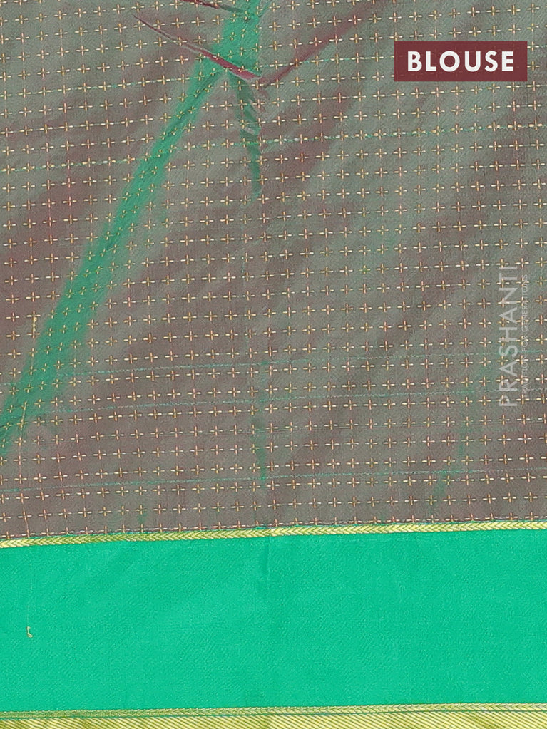 Arani semi silk saree peacock green with zari woven rudhraksha buttas and zari woven border