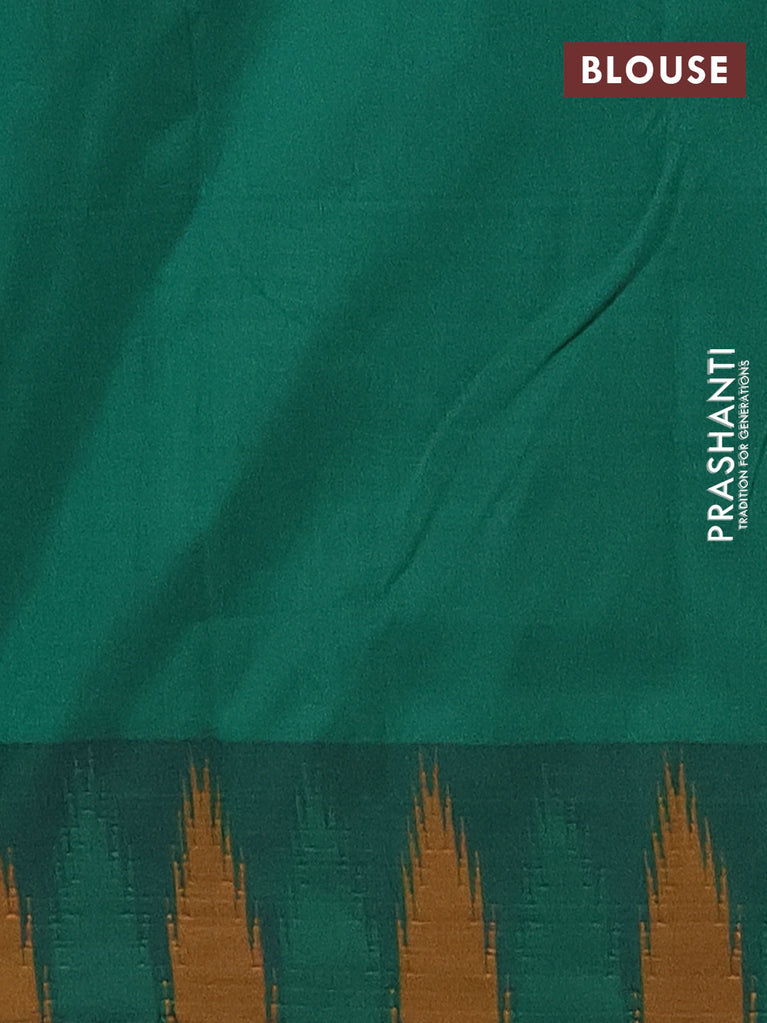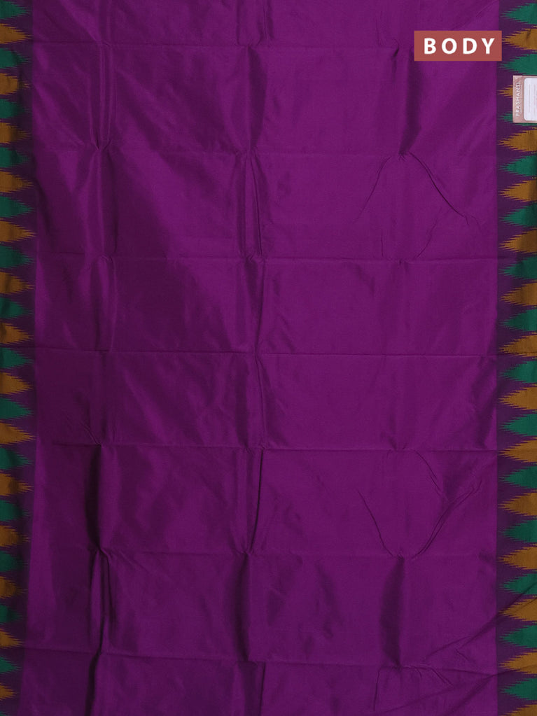 Arani semi silk saree purple and green mustard yellow with plain body and temple design border