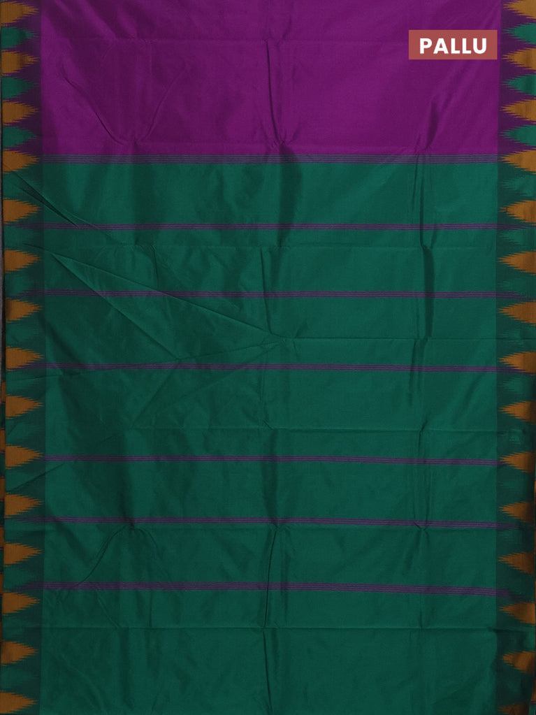 Arani semi silk saree purple and dual shade of green with plain body and temple design border